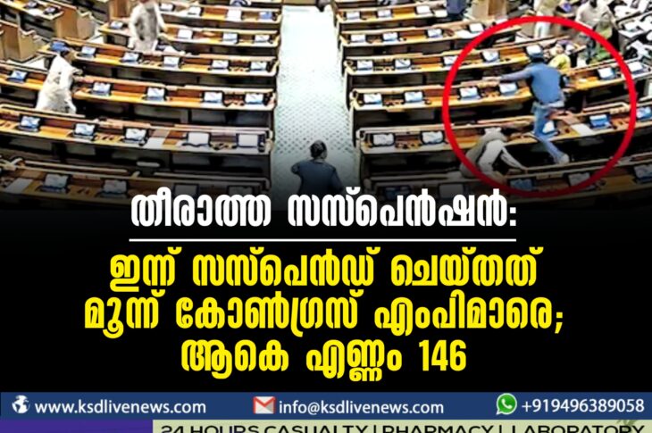 ദേശീയം തീരാത്ത സസ്പെന്ഷന്: ഇന്ന് സസ്പെന്ഡ് ചെയ്തത് മൂന്ന് കോണ്ഗ്രസ് എംപിമാരെ; ആകെ എണ്ണം 146December 21, 2023