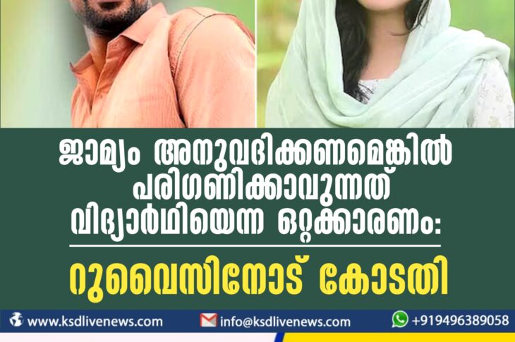 കേരളം ജാമ്യം അനുവദിക്കണമെങ്കിൽ പരിഗണിക്കാവുന്നത് വിദ്യാർഥിയെന്ന ഒറ്റക്കാരണം: റുവൈസിനോട് കോടതിDecember 20, 2023