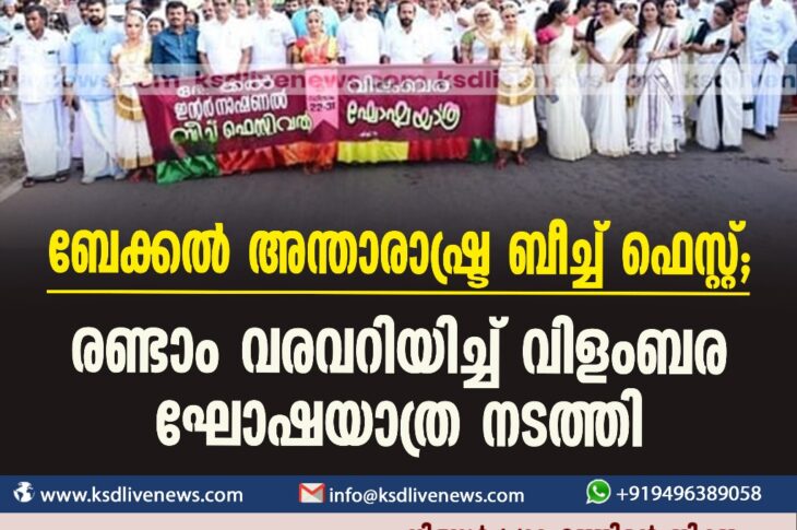 കാസർഗോഡ് ബേക്കല് അന്താരാഷ്ട്ര ബീച്ച് ഫെസ്റ്റ്; രണ്ടാം വരവറിയിച്ച് വിളംബര ഘോഷയാത്ര നടത്തിDecember 20, 2023