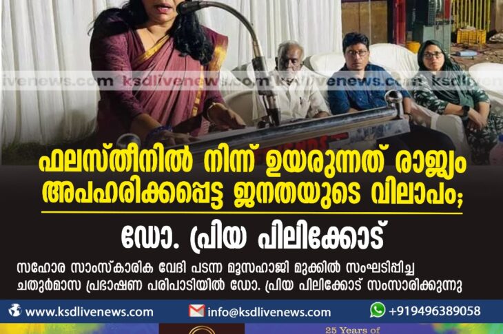 പ്രാദേശികം ഫലസ്തീനിൽനിന്ന് ഉയരുന്നത് രാജ്യം അപഹരിക്കപ്പെട്ട ജനതയുടെ വിലാപം –ഡോ. പ്രിയ പിലിക്കോട്December 19, 2023