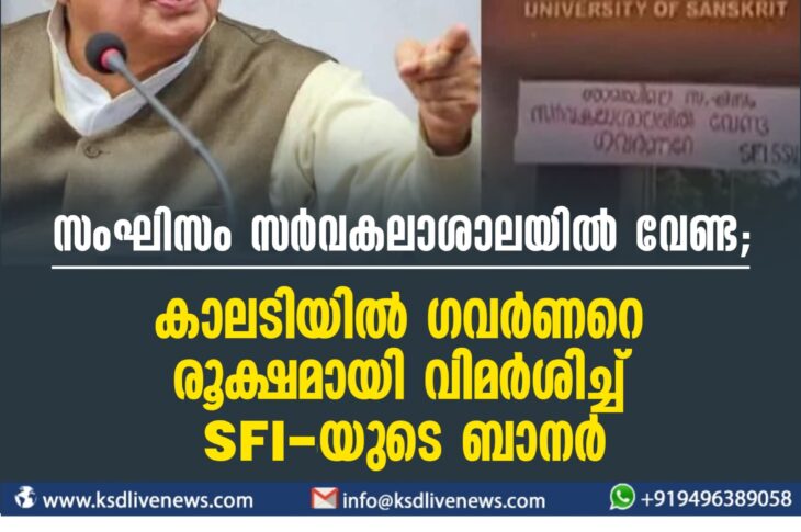 കേരളം സംഘിസം സര്വകലാശാലയില് വേണ്ട’; കാലടിയില് ഗവര്ണറെ രൂക്ഷമായി വിമര്ശിച്ച് SFIയുടെ ബാനര്December 15, 2023