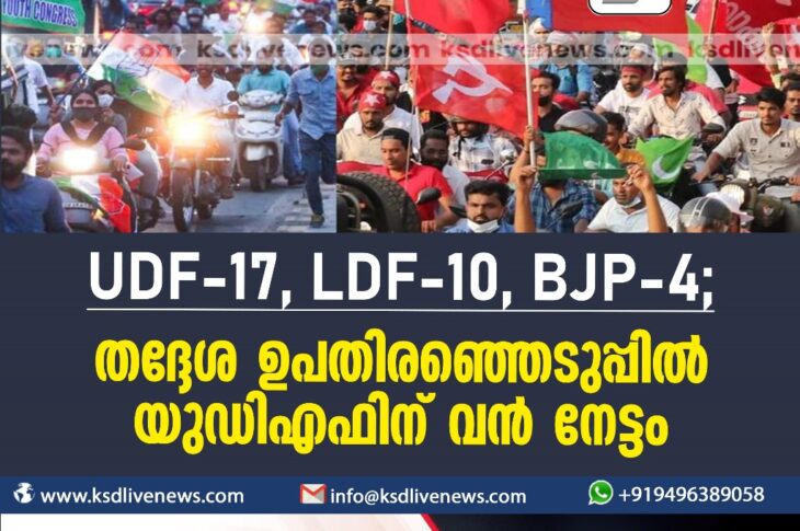 കേരളം UDF-17, LDF-10, BJP-4; തദ്ദേശ ഉപതിരഞ്ഞെടുപ്പില് യുഡിഎഫിന് വന് നേട്ടം, local body-by election results keralaDecember 13, 2023