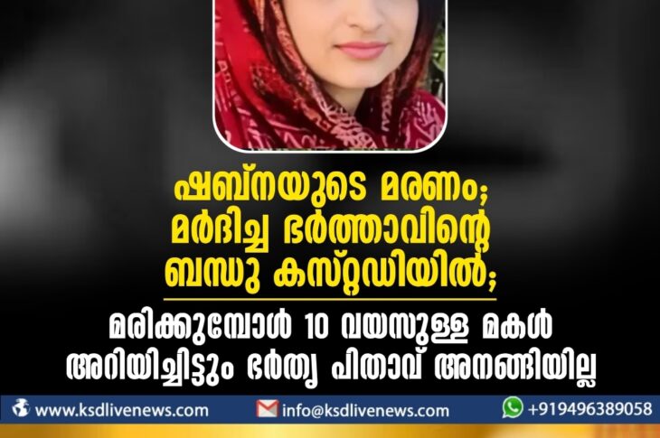 കേരളം ഷബ്നയുടെ മരണം ; മർദിച്ച ഭർത്താവിന്റെ ബന്ധു കസ്റ്റഡിയിൽ; മരിക്കുമ്പോൾ 10 വയസുള്ള മകൾ അറിയിച്ചിട്ടും ഭർതൃ പിതാവ് അനങ്ങിയില്ലDecember 9, 2023