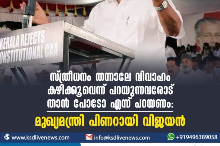 കേരളം സ്ത്രീധനം തന്നാലേ വിവാഹം കഴിക്കൂവെന്ന് പറയുന്നവരോട് താൻ പോടോ എന്ന് പറയണം: മുഖ്യമന്ത്രി പിണറായി വിജയൻDecember 7, 2023