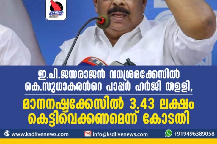 കേരളം ഇ.പി.ജയരാജൻ വധശ്രമക്കേസില് കെ.സുധാകരന്റെ പാപ്പർ ഹർജി തളളി,മാനനഷ്ടക്കേസിൽ 3.43 ലക്ഷം കെട്ടിവെക്കണമെന്ന് കോടതിDecember 7, 2023