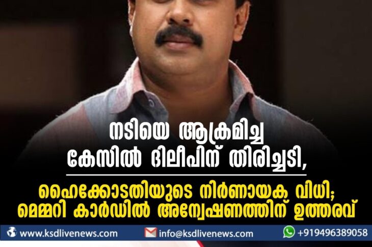 നടിയെ ആക്രമിച്ച കേസിൽ ദിലീപിന് തിരിച്ചടി, മെമ്മറി കാർഡിൽ അന്വേഷണത്തിന് ഉത്തരവ്