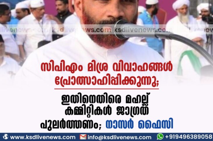 കേരളം സിപിഎം മിശ്ര വിവാഹങ്ങൾ പ്രോത്സാഹിപ്പിക്കുന്നു, ഇതിനെതിരെ മഹല്ല് കമ്മിറ്റികൾ ജാഗ്രത പുലർത്തണം’: നാസർ ഫൈസിDecember 6, 2023