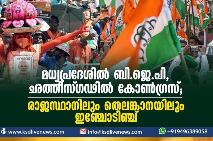 ദേശീയം മധ്യപ്രദേശില് ബിജെപി, ഛത്തീസ്ഗഢില് കോണ്ഗ്രസ്; രാജസ്ഥാനിലും തെലങ്കാനയിലും ഇഞ്ചോടിഞ്ച്November 30, 2023