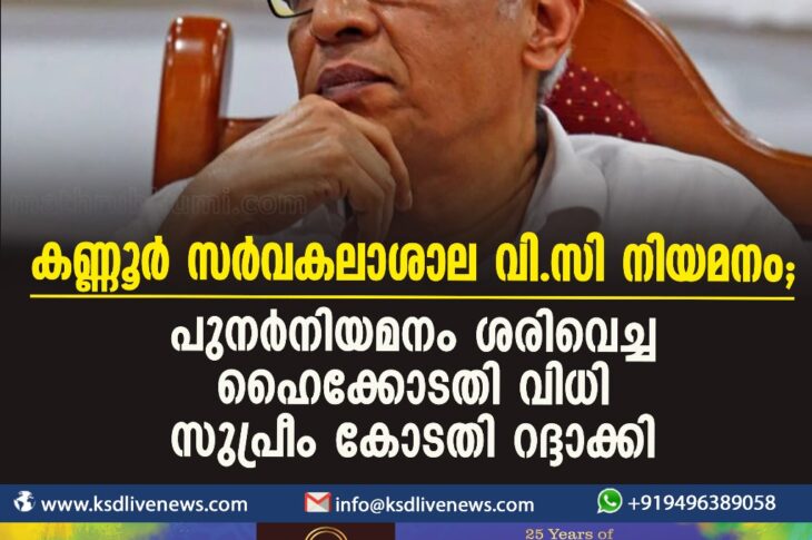 കേരളം കണ്ണൂർ സർവകലാശാല വി.സി നിയമനം; പുനർനിയമനം ശരിവെച്ച ഹൈക്കോടതി വിധി സുപ്രീം കോടതി റദ്ദാക്കിNovember 30, 2023