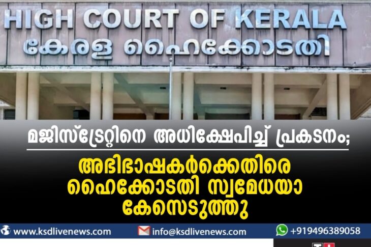 കേരളം മജിസ്ട്രേറ്റിനെ അധിക്ഷേപിച്ച് പ്രകടനം; അഭിഭാഷകർക്കെതിരെ ഹൈക്കോടതി സ്വമേധയാ കേസെടുത്തുNovember 29, 2023