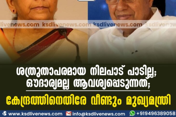 കേരളം ശത്രുതാപരമായ നിലപാട് പാടില്ല, ഔദാര്യമല്ല ആവശ്യപ്പെടുന്നത്; കേന്ദ്രത്തിനെതിരേ വീണ്ടും മുഖ്യമന്ത്രിNovember 27, 2023