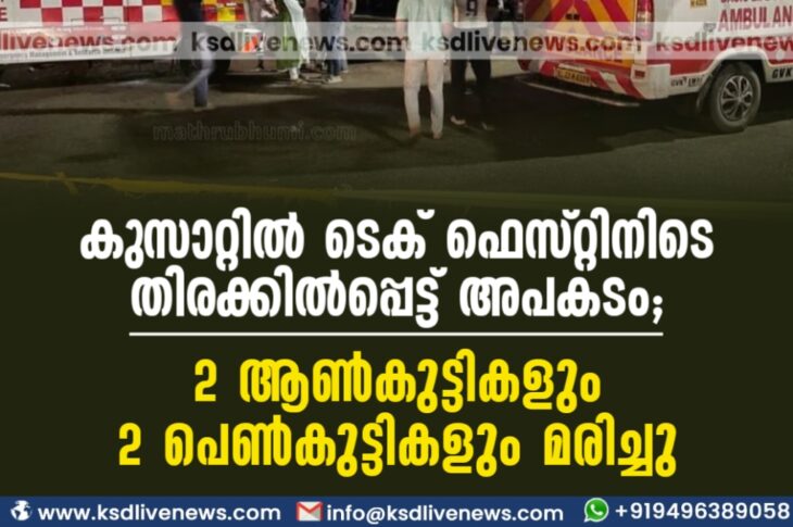കേരളം കുസാറ്റിൽ ടെക് ഫെസ്റ്റിനിടെ തിരക്കിൽപ്പെട്ട് അപകടം; 2 ആൺകുട്ടികളും 2 പെൺകുട്ടികളും മരിച്ചുNovember 25, 2023