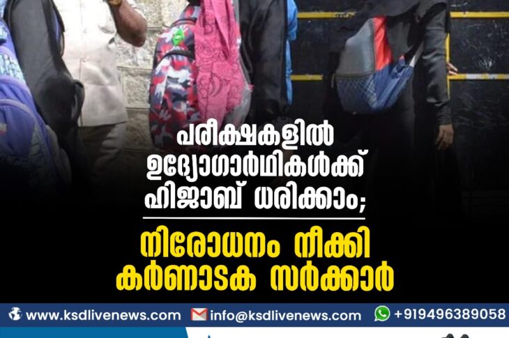 ദേശീയം പരീക്ഷകളില് ഉദ്യോഗാര്ഥികള്ക്ക് ഹിജാബ് ധരിക്കാം; നിരോധനം നീക്കി കര്ണാടക സര്ക്കാര്October 23, 2023
