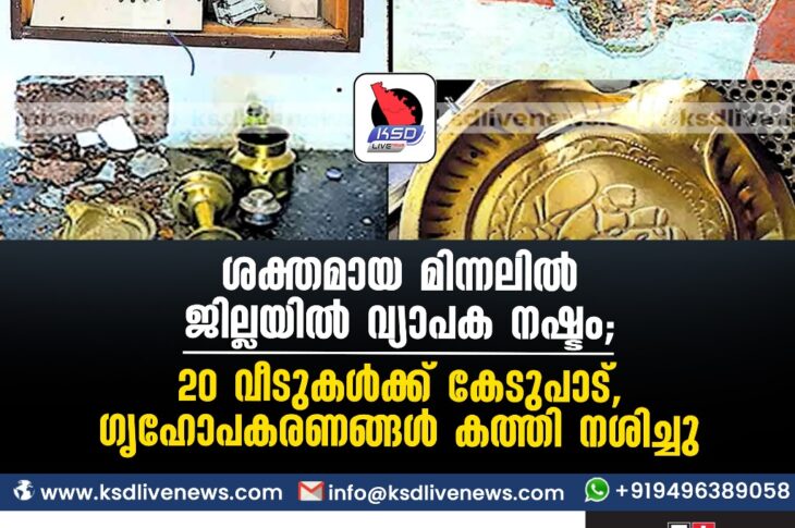 കാസർഗോഡ് ശക്തമായ മിന്നലിൽ ജില്ലയിൽ വ്യാപക നഷ്ടം; 20 വീടുകൾക്ക് കേടുപാട്, ഗൃഹോപകരണങ്ങൾ കത്തി നശിച്ചുOctober 23, 2023
