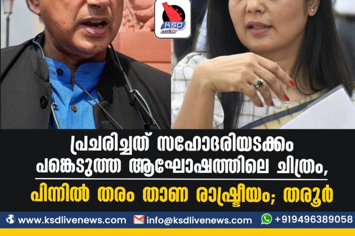 കേരളംദേശീയം പ്രചരിച്ചത് സഹോദരിയടക്കം പങ്കെടുത്ത ആഘോഷത്തിലെ ചിത്രം, പിന്നില് തരംതാണ രാഷ്ട്രീയം- തരൂര്October 23, 2023