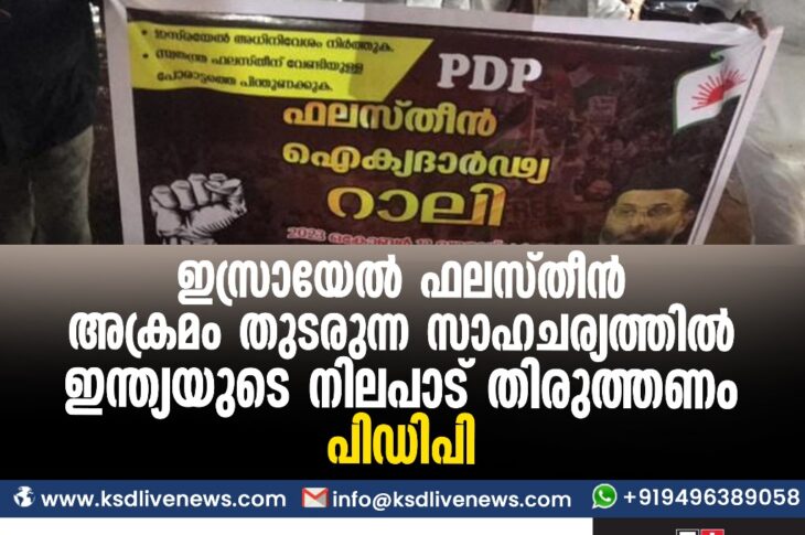 പ്രാദേശികം ഇസ്രായേൽ ഫലസ്തീൻ അക്രമം തുടരുന്ന സാഹചര്യത്തിൽ ഇന്ത്യയുടെ നിലപാട് തിരുത്തണം-പിഡിപിOctober 21, 2023
