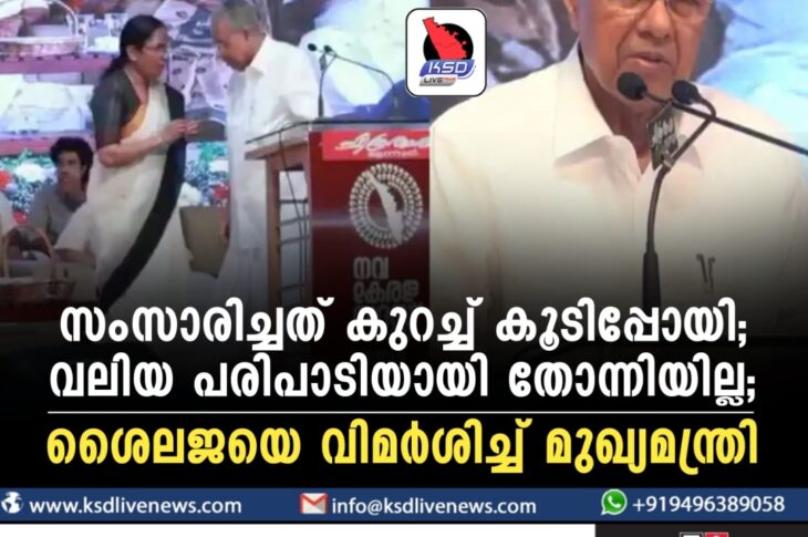 കേരളം ‘സംസാരിച്ചത് കുറച്ച് കൂടിപ്പോയി; വലിയ പരിപാടിയായി തോന്നിയില്ല’; ശൈലജയെ വിമര്ശിച്ച് മുഖ്യമന്ത്രിNovember 22, 2023