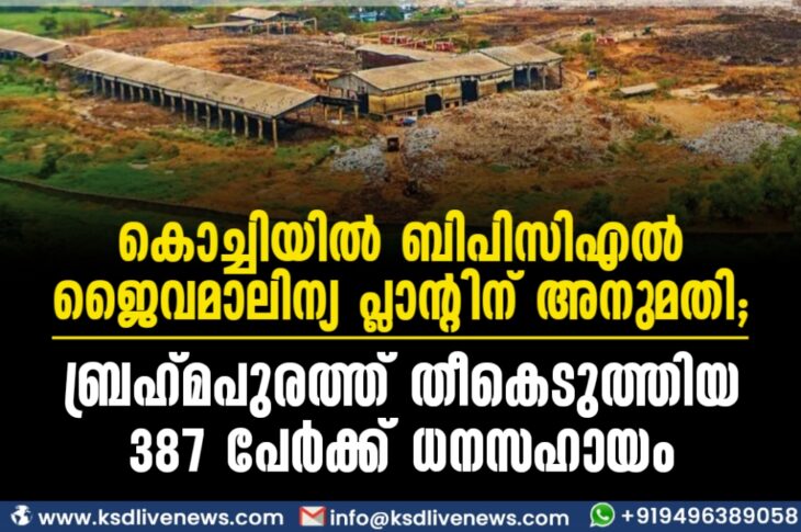കേരളം കൊച്ചിയില് BPCL ജൈവമാലിന്യ പ്ലാന്റിന് അനുമതി, ബ്രഹ്മപുരത്ത് തീകെടുത്തിയ 387 പേര്ക്ക് ധനസഹായംNovember 22, 2023