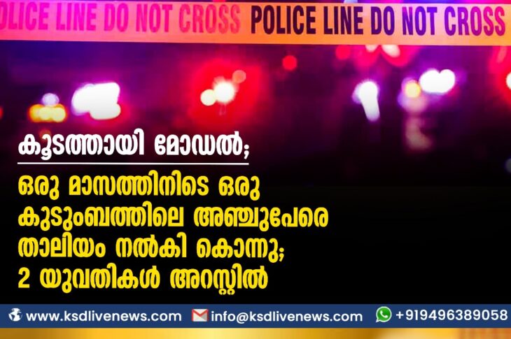 ദേശീയം കൂടത്തായി മോഡൽ; ഒരു മാസത്തിനിടെ ഒരു കുടുംബത്തിലെ അഞ്ചുപേരെ താലിയം നൽകി കൊന്നു; 2 യുവതികൾ അറസ്റ്റിൽOctober 20, 2023