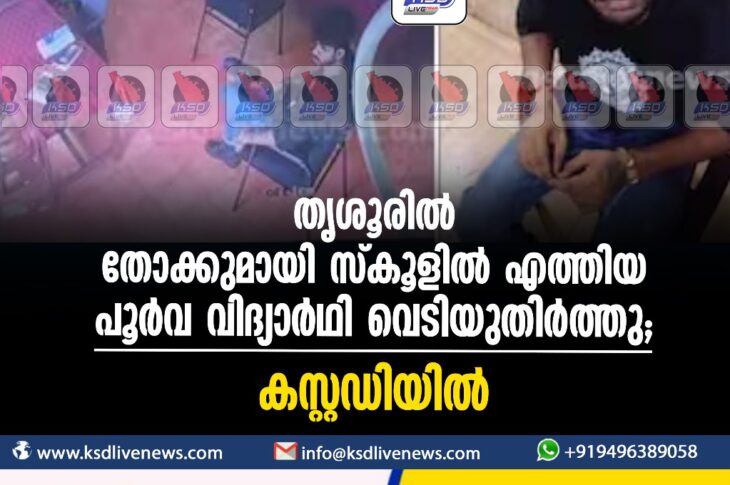 കേരളം തൃശൂരിൽ തോക്കുമായി സ്കൂളിൽ എത്തിയ പൂർവവിദ്യാർഥി വെടിയുതിർത്തു; കസ്റ്റഡിയിൽ – വിഡിയോNovember 21, 2023