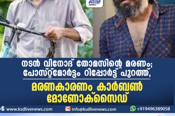 കേരളം നടൻ വിനോദ് തോമസിന്റെ മരണം; പോസ്റ്റ്മോര്ട്ടം റിപ്പോര്ട്ട് പുറത്ത്, മരണകാരണം കാര്ബണ് മോണോക്സൈഡ്November 20, 2023