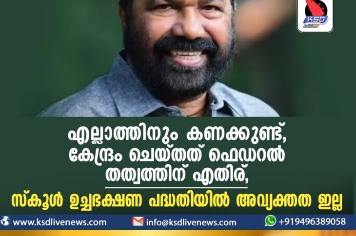 കേരളം ‘എല്ലാത്തിനും കണക്കുണ്ട്, കേന്ദ്രം ചെയ്തത് ഫെഡറൽ തത്വത്തിന് എതിര്, സ്കൂൾ ഉച്ചഭക്ഷണ പദ്ധതിയിൽ അവ്യക്തത ഇല്ല’November 20, 2023