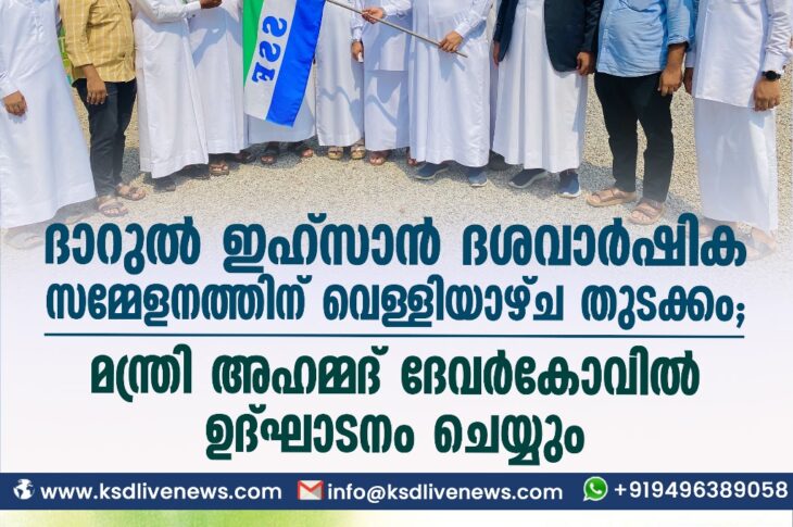 പ്രാദേശികം ദാറുല് ഇഹ്സാന് ദശവാര്ഷിക സമ്മേളനത്തിന് വെള്ളിയാഴ്ച തുടക്കം: മന്ത്രി അഹമ്മദ് ദേവര്കോവില് ഉദ്ഘാടനം ചെയ്യുംOctober 18, 2023