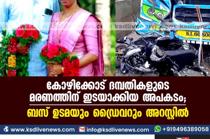 കേരളം കോഴിക്കോട് ദമ്പതികളുടെ മരണത്തിന് ഇടയാക്കിയ അപകടം; ബസ് ഉടമയും ഡ്രൈവറും അറസ്റ്റിൽOctober 17, 2023