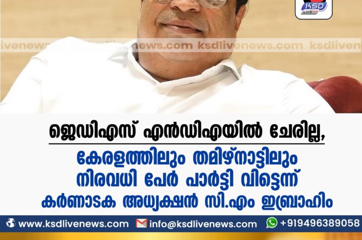 ദേശീയം ജെഡിഎസ് എൻഡിഎയിൽ ചേരില്ല’, കേരളത്തിലും തമിഴ്നാട്ടിലും നിരവധി പേർ പാർട്ടി വിട്ടെന്ന് കർണാടക അധ്യക്ഷൻ സി.എം ഇബ്രാഹിംOctober 17, 2023