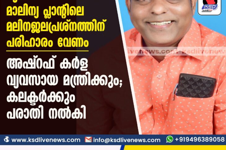 കാസർഗോഡ് അനന്തപുരം വ്യവസായ പാർക്കിൽ മാലിന്യ പ്ലാൻ്റിലെ മലിനജല പ്രശ്നത്തിന് പരിഹാരം വേണം അഷ്റഫ് കർള വ്യവസായ മന്ത്രിക്കും, കലക്ടർക്കും പരാതി നൽകിOctober 16, 2023