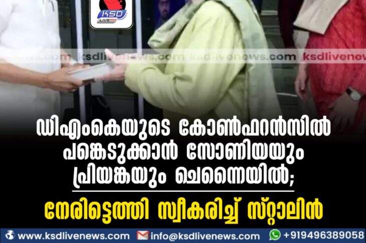 ദേശീയം ഡിഎംകെയുടെ കോണ്ഫറൻസില് പങ്കെടുക്കാൻ സോണിയയും പ്രിയങ്കയും ചെന്നൈയില്; നേരിട്ടെത്തി സ്വീകരിച്ച് സ്റ്റാലിൻOctober 14, 2023