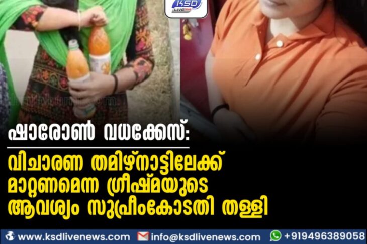 കേരളം ഷാരോണ് വധക്കേസ്: വിചാരണ തമിഴ്നാട്ടിലേക്ക് മാറ്റണമെന്ന ഗ്രീഷ്മയുടെ ആവശ്യം സുപ്രീം കോടതി തള്ളിOctober 13, 2023
