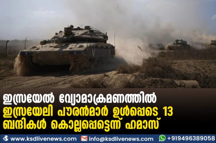 വിദേശം ഇസ്രയേൽ വ്യോമാക്രമണത്തില് ഇസ്രയേലി പൗരന്മാര് ഉള്പ്പെടെ 13 ബന്ദികൾ കൊല്ലപ്പെട്ടെന്ന് ഹമാസ്October 13, 2023