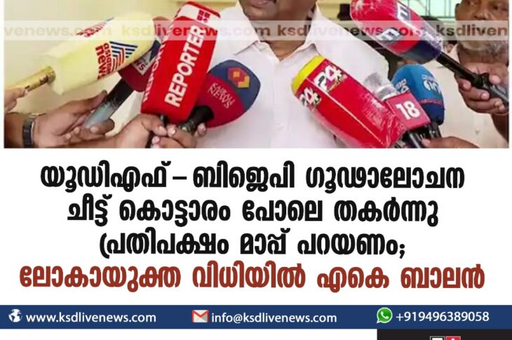 കേരളം യൂഡിഎഫ് – ബിജെപി ഗൂഢാലോചന ചീട്ട് കൊട്ടാരം പോലെ തകർന്നു, പ്രതിപക്ഷം മാപ്പ് പറയണം; ലോകായുക്ത വിധിയിൽ എകെ ബാലൻNovember 13, 2023