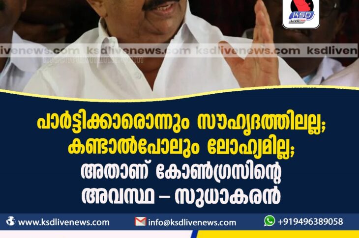കേരളം പാര്ട്ടിക്കാരൊന്നും സൗഹൃദത്തിലല്ല, കണ്ടാല്പോലും ലോഹ്യമില്ല; അതാണ് കോണ്ഗ്രസിന്റെ അവസ്ഥ- സുധാകരന്,November 11, 2023