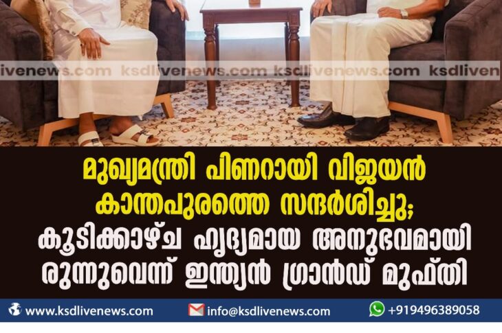 കേരളം മുഖ്യമന്ത്രി പിണറായി വിജയന് കാന്തപുരത്തെ സന്ദര്ശിച്ചു; കൂടിക്കാഴ്ച ഹൃദ്യമായ അനുഭവമായിരുന്നുവെന്ന് ഇന്ത്യൻ ഗ്രാന്ഡ് മുഫ്തിNovember 11, 2023