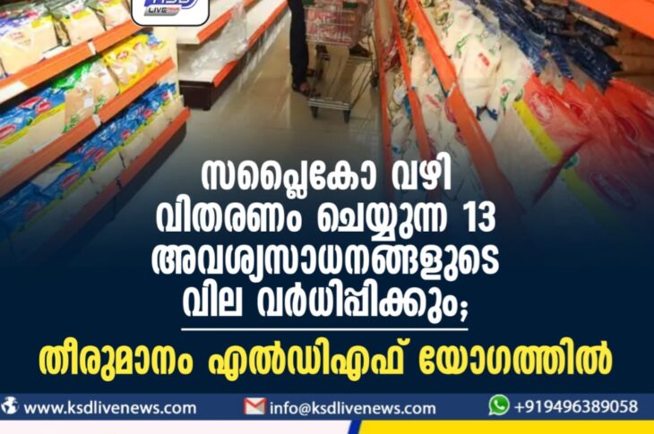 കേരളം സപ്ലൈകോ വഴി വിതരണം ചെയ്യുന്ന 13 അവശ്യസാധനങ്ങളുടെ വില വർധിപ്പിക്കും; തീരുമാനം എൽഡിഎഫ് യോഗത്തിൽNovember 10, 2023