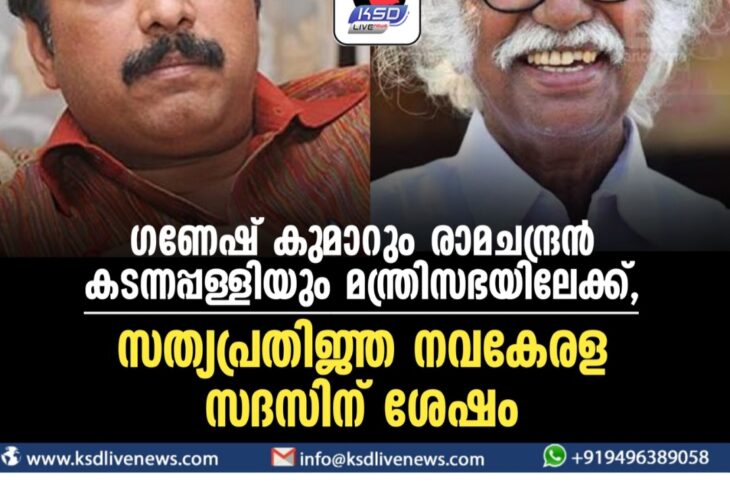കേരളം ഗണേഷ് കുമാറും രാമചന്ദ്രൻ കടന്നപ്പള്ളിയും മന്ത്രിസഭയിലേക്ക്, സത്യപ്രതിജ്ഞ നവകേരള സദസിന് ശേഷംNovember 10, 2023