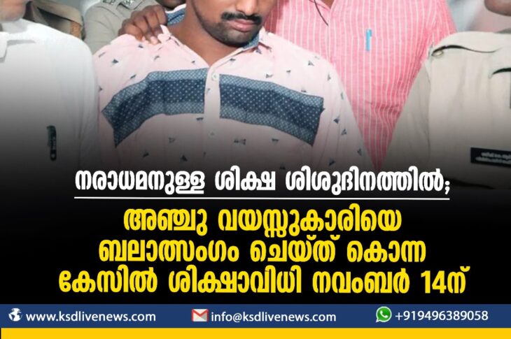 കേരളം നരാധമനുള്ള ശിക്ഷ ശിശുദിനത്തിൽ; അഞ്ചുവയസ്സുകാരിയെ ബലാത്സംഗംചെയ്ത് കൊന്ന കേസിൽ ശിക്ഷാവിധി നവംബർ 14-ന്November 9, 2023