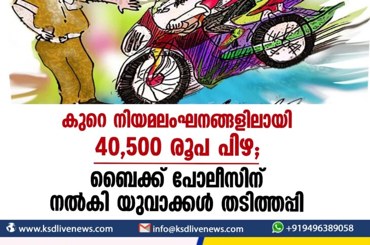 കേരളം കുറെ നിയമലംഘനങ്ങളിലായി 40,500 രൂപ പിഴ; ബൈക്ക് പോലീസിന് നല്കി യുവാക്കള് തടിത്തപ്പിNovember 9, 2023