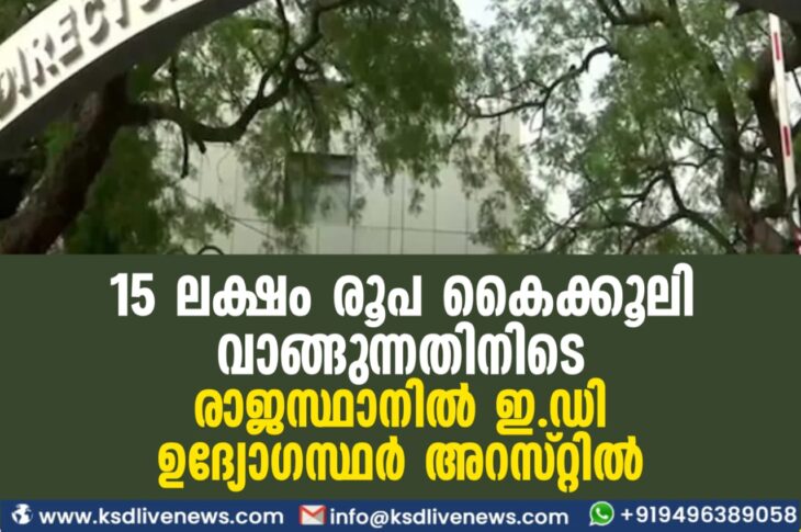 15 ലക്ഷം രൂപ കൈക്കൂലി വാങ്ങുന്നതിനിടെ രാജസ്ഥാനിൽ ഇ.ഡി ഉദ്യോഗസ്ഥർ അറസ്റ്റിൽ