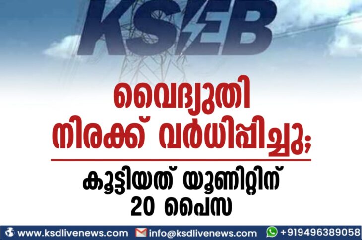വൈദ്യുതി നിരക്ക് വര്ധിപ്പിച്ചു; കൂട്ടിയത് യൂണിറ്റിന് 20 പൈസ