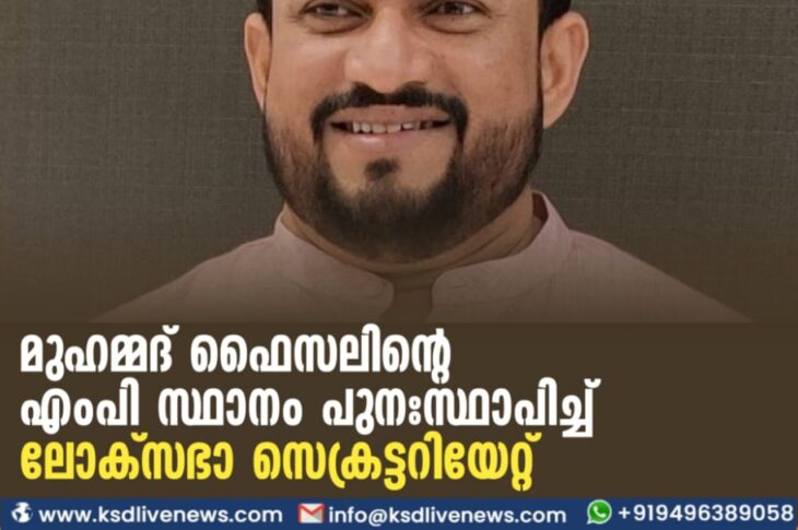 മുഹമ്മദ് ഫൈസലിന്റെ എംപി സ്ഥാനം പുനഃസ്ഥാപിച്ച് ലോക്സഭാ സെക്രട്ടറിയേറ്റ്
