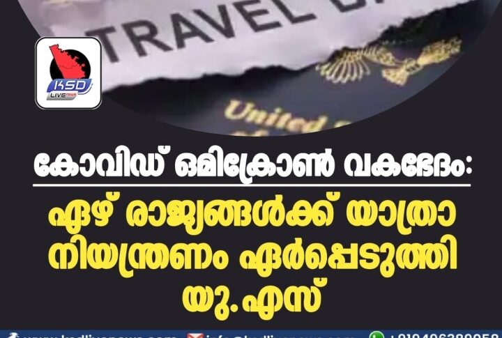 കേരളം കോവിഡ് ഒമിക്രോണ് വകഭേദം: ഏഴ് രാജ്യങ്ങള്ക്ക് യാത്രാനിയന്ത്രണം ഏര്പ്പെടുത്തി യു.എസ്November 27, 2021