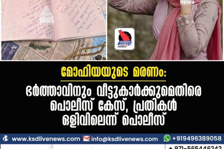 കേരളം മോഫിയയുടെ മരണം: ഭര്ത്താവിനും വീട്ടുകാര്ക്കുമെതിരെ പൊലീസ് കേസ്, പ്രതികള് ഒളിവിലെന്ന് പൊലീസ്November 23, 2021