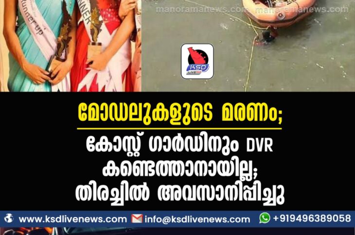 കേരളം മോഡലുകളുടെ മരണം: കോസ്റ്റ് ഗാര്ഡിനും DVR കണ്ടെത്താനായില്ല: തിരച്ചില് അവസാനിപ്പിച്ചുNovember 23, 2021