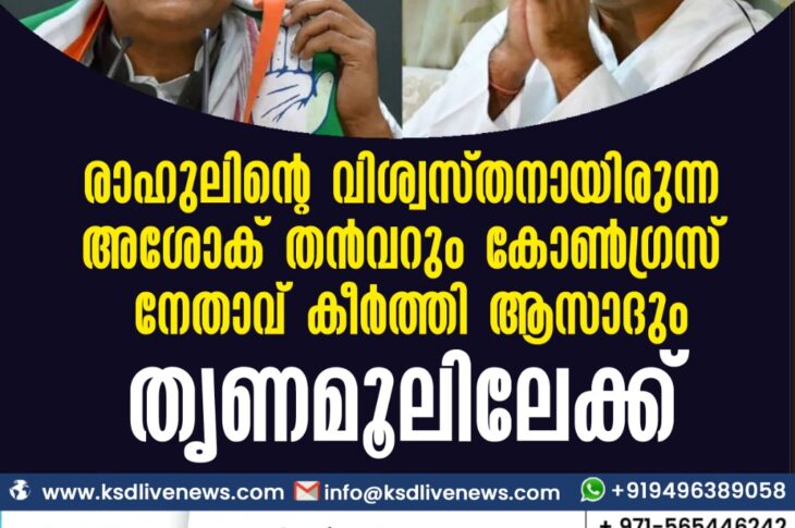 ദേശീയം രാഹുലിന്റെ വിശ്വസ്തനായിരുന്ന അശോക് തന്വറും കോണ്ഗ്രസ് നേതാവ് കീര്ത്തി ആസാദും തൃണമൂലിലേക്ക്November 23, 2021