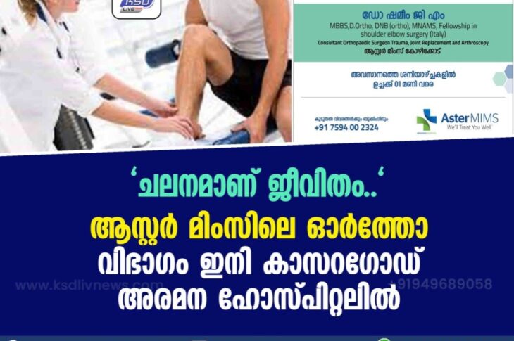 ആസ്റ്റർ മിംസ് ആശുപത്രിയിലെ ഓർത്തോ വിഭാഗം ഇനി കാസറഗോഡ് അരമന ഹോസ്പിറ്റലിൽ