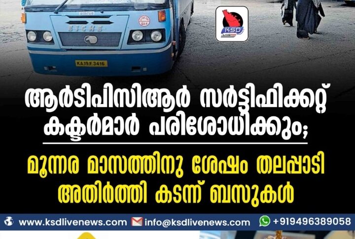 കാസർഗോഡ് ആർടിപിസിആർ സർട്ടിഫിക്കറ്റ് കണ്ടക്ടർമാർ പരിശോധിക്കും; മൂന്നര മാസത്തിനു ശേഷം തലപ്പാടി അതിർത്തി കടന്ന് ബസുകൾ…November 20, 2021