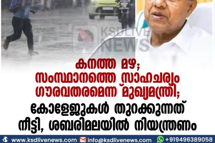 കേരളം കനത്ത മഴ: സംസ്ഥാനത്തെ സാഹചര്യം ഗൗരവതരമെന്ന് മുഖ്യമന്ത്രി; കോളേജുകൾ തുറക്കുന്നത് നീട്ടി, ശബരിമലയിൽ നിയന്ത്രണംOctober 16, 2021